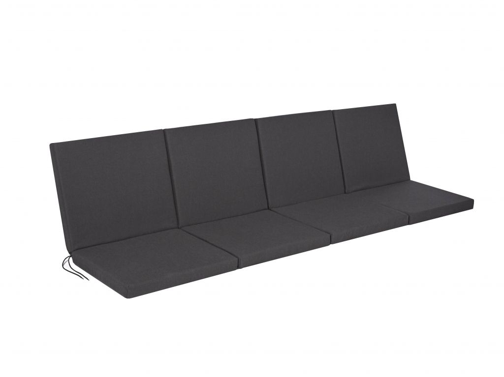 Met een dikte van 6cm is dit een kussens dat voorziet in een heerlijk zitcomfort. De maat is passend voor vierzitsbank Zeist en Lisse. Het kussen is voorzien van ritssluitingen waardoor de hoes uitwasbaar is, ook zitten er losse koordjes aan waarmee het kussen aan de bank bevestigd kan worden. De rugleuning en het zitgedeelte zijn vast met elkaar verbonden, daardoor staat het kussen netjes rechtop in de bank en is het ook gemakkelijk op te bergen. Naast de kleur antraciet is het kussen ook verkrijgbaar in de kleur taupe.
