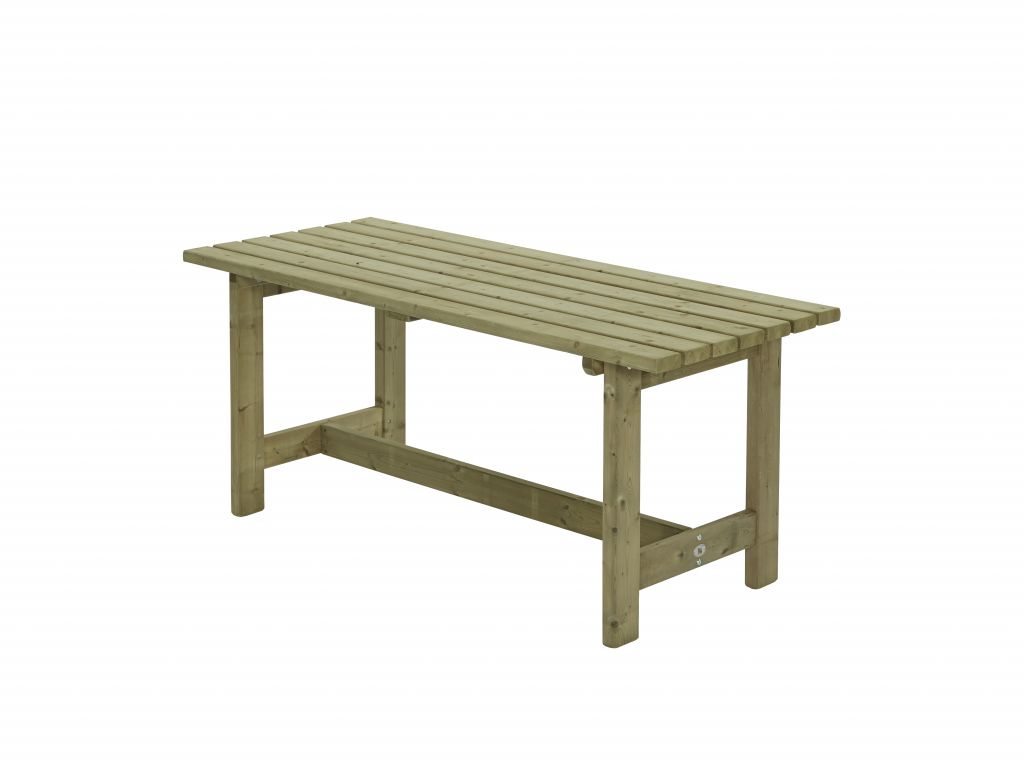 Deze tuintafel heeft een solide constructie met een houten onderbalk in het midden onder de tuintafel. Het Noord-Europees vurenhout is voorzien van een FSC®-keurmerk en herkenbaar aan de rustige nervenstructuur en kleine, gezonde noesten. Alle onderdelen zijn per stuk geïmpregneerd en splintervrij afgewerkt. De tuintafel kan jarenlang mee en wordt geleverd als bouwpakket. Montage is gemakkelijk omdat zowel het blad als de zijkanten al compleet zijn gemonteerd.