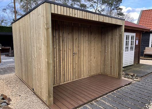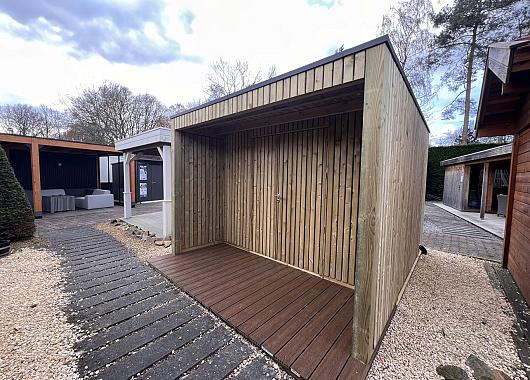 Met dit modulair systeem zijn ontelbare combinaties te verwezenlijken. Een carport of tuinhuis kan uitgebreid worden met een berging, terras of fietsenstalling.