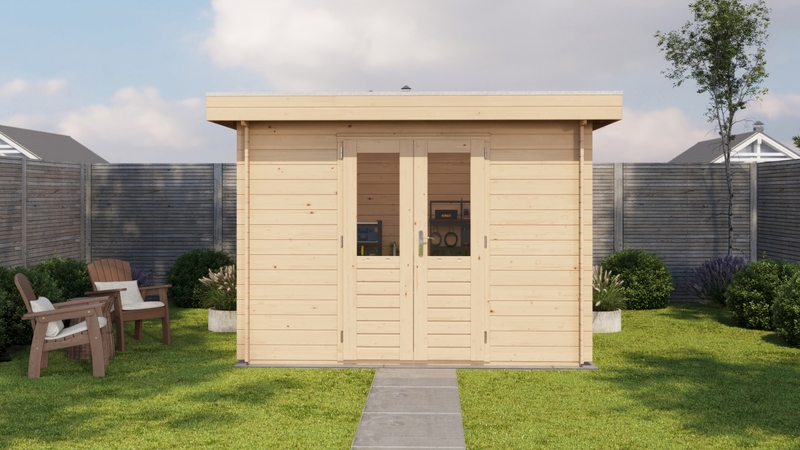 Lugarde Select Blokhut 300x400cm - Keteldruk Bruin - excl. EPDM - 28mm 1e klas gedroogd vurenhout - 18mm Dakplanken met veer en groef - Dubbelglas - Dubbele deur met gelamineerd 4,5cm dik hout - Alle beslag en ijzerwaren inclusief