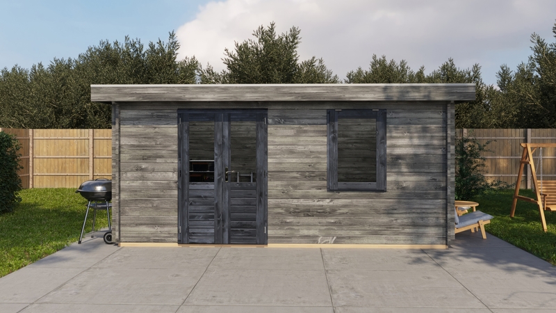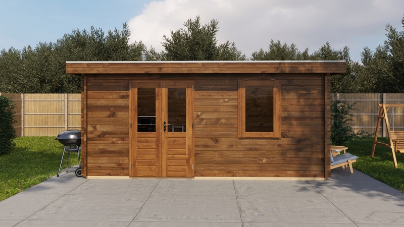 Lugarde Select Blokhut 500x400cm - Keteldruk Bruin - excl. EPDM - 44mm 1e klas gedroogd vurenhout - 18mm Dakplanken met veer en groef - Dubbelglas - Dubbele deur en uitzetraam met gelamineerd 4,5cm dik hout - Alle beslag en ijzerwaren inclusief