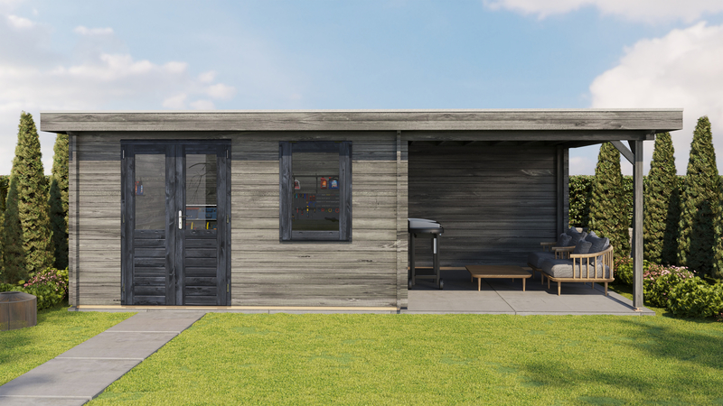 Lugarde Blokhut met overkapping Wehl 400x400cm + 300cm