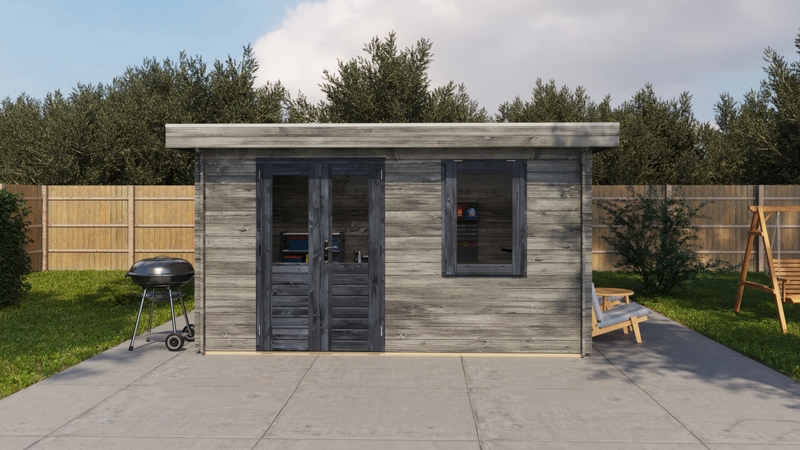 Lugarde Select Blokhut 400x300cm - Keteldruk Bruin - excl. EPDM - 28mm 1e klas gedroogd vurenhout - 18mm Dakplanken met veer en groef - Dubbelglas - Dubbele deur en uitzetraam met gelamineerd 4,5cm dik hout - Alle beslag en ijzerwaren inclusief
