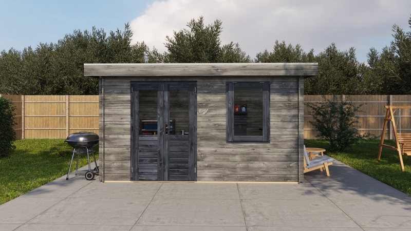 Lugarde Select Blokhut 400x250cm - Keteldruk Bruin - excl. EPDM - 28mm 1e klas gedroogd vurenhout - 18mm Dakplanken met veer en groef - Dubbelglas - Dubbele deur en uitzetraam met gelamineerd 4,5cm dik hout - Alle beslag en ijzerwaren inclusief