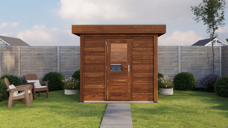 Lugarde select Tuinhuis 250x200cm - Platdak - excl. EPDM 44mm - 1e klas gedroogd vurenhout - 18mm Dakplanken met veer en groef - Dubbelglas - Deur *linksdraaiend* met gelamineerd 4,5cm dik hout - Alle beslag en ijzerwaren inclusief - Houtbehandeling met houtolie bruin