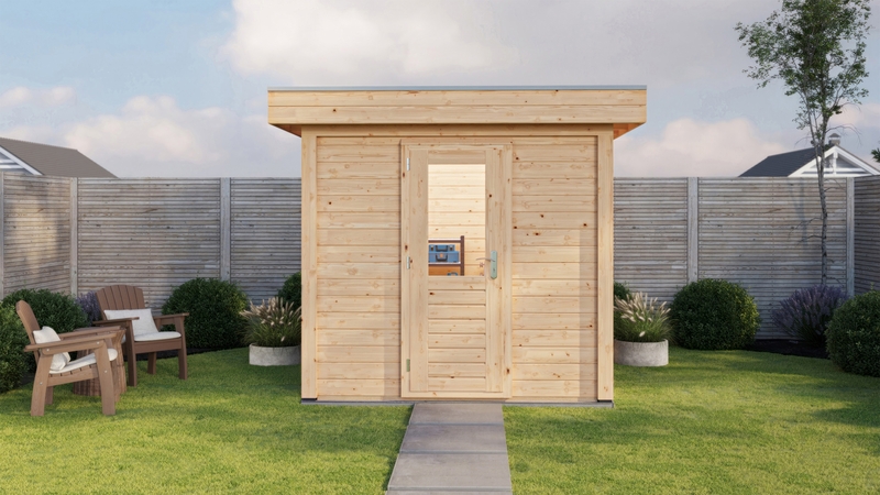 Lugarde select Tuinhuis 250x250cm - Platdak - excl. EPDM 44mm - 1e klas gedroogd vurenhout - 18mm Dakplanken met veer en groef - Dubbelglas - Deur met gelamineerd 4,5cm dik hout - Alle beslag en ijzerwaren inclusief - Houtbehandeling met houtolie bruin