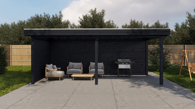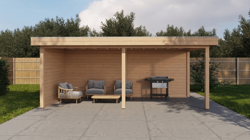 Lugarde select veranda 588x300cm - Platdak - excl. EPDM - 28mm - 1e klas gedroogd vurenhout - 18mm Dakplanken met veer en groef