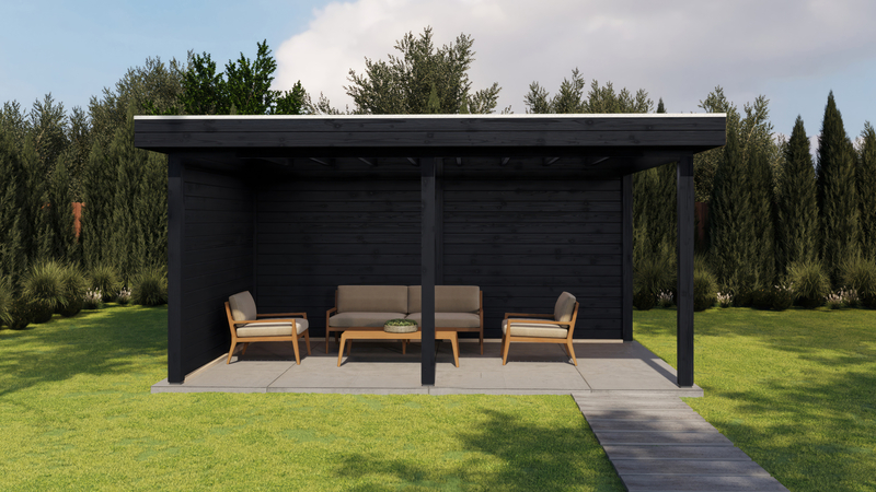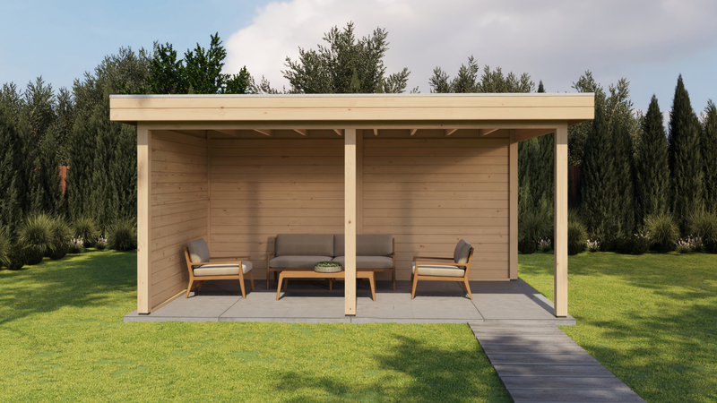 Lugarde select veranda 488x300cm - Platdak - excl. EPDM - 28mm - 1e klas gedroogd vurenhout - 18mm Dakplanken met veer en groef