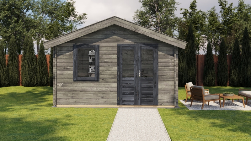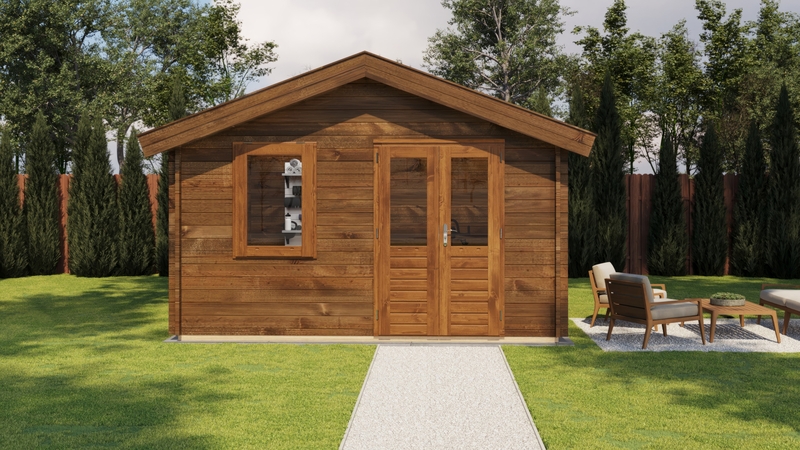 Lugarde Select Blokhut 400x200cm - Keteldruk Bruin - excl. SHINGLES - 44mm 1e klas gedroogd vurenhout - 18mm Dakplanken met veer en groef - Dubbelglas - Dubbele deur en uitzetraam met gelamineerd 4,5cm dik hout - Alle beslag en ijzerwaren inclusief