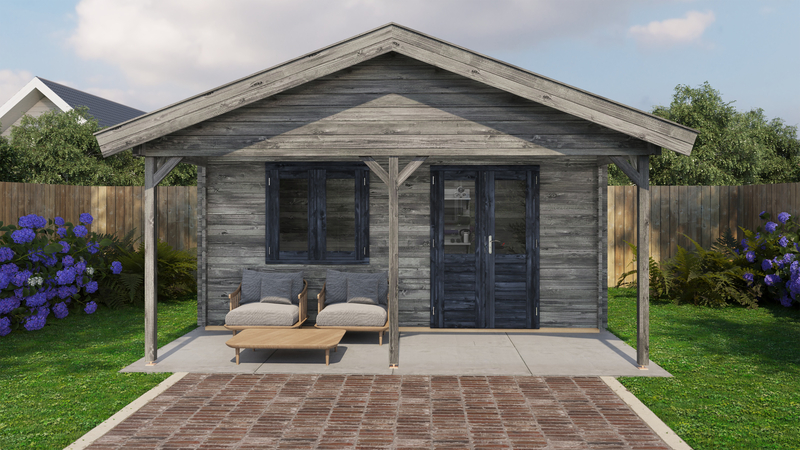 Lugarde Blokhut met overkapping Bennekom 500x400cm + 200cm