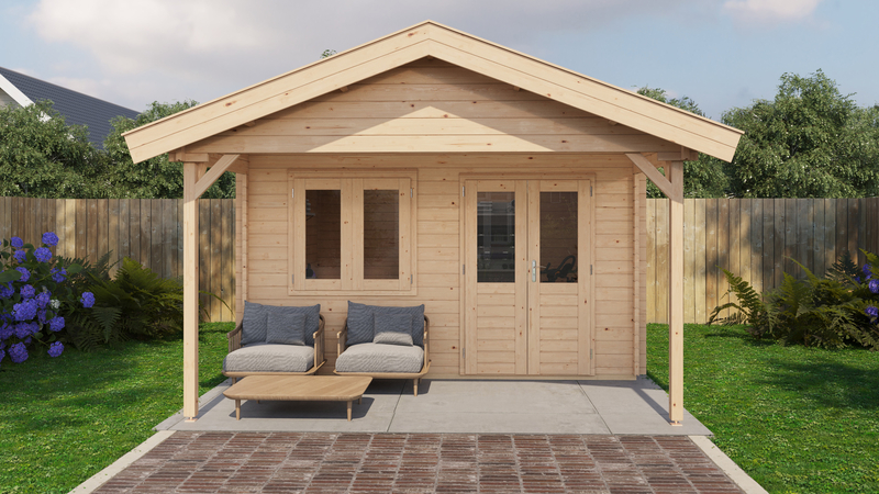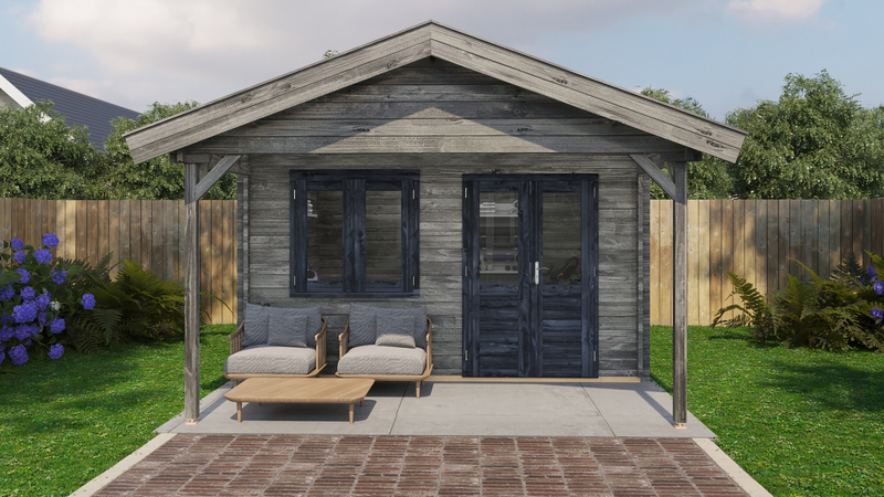 Lugarde Blokhut met overkapping Elburg 400x400cm + 200cm