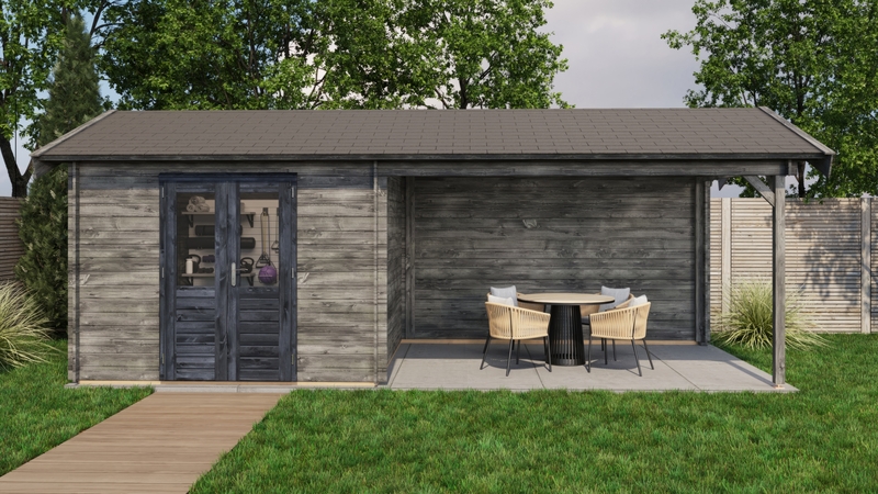 Lugarde Blokhut met overkapping Epe 300x300cm + 400cm