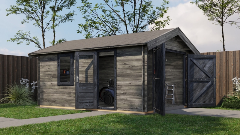 Lugarde Blokhut Opheusden met garagedeur 350x500cm