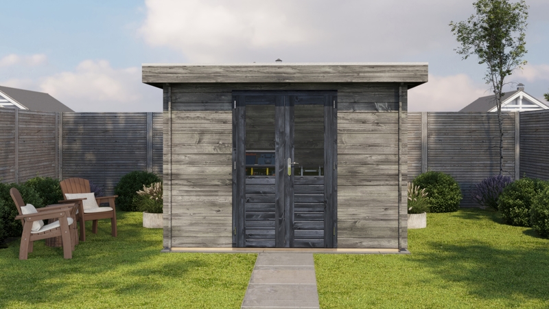 Lugarde Select Blokhut 300x300cm - Keteldruk Bruin - excl. EPDM - 28mm 1e klas gedroogd vurenhout - 18mm Dakplanken met veer en groef - Dubbelglas - Dubbele deur met gelamineerd 4,5cm dik hout - Alle beslag en ijzerwaren inclusief