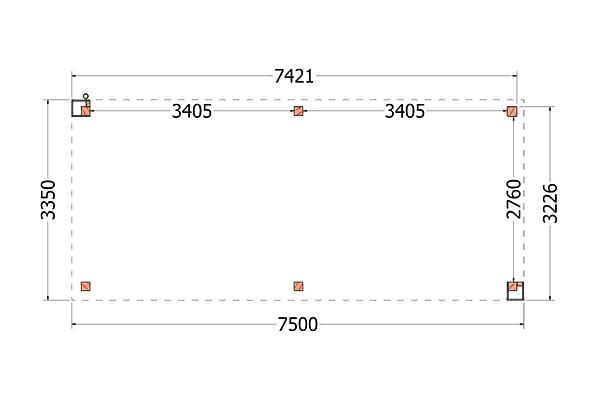 • Buitenverblijf Verona model rechts 7500x3350x2500mm (bxdxh)    52.1126