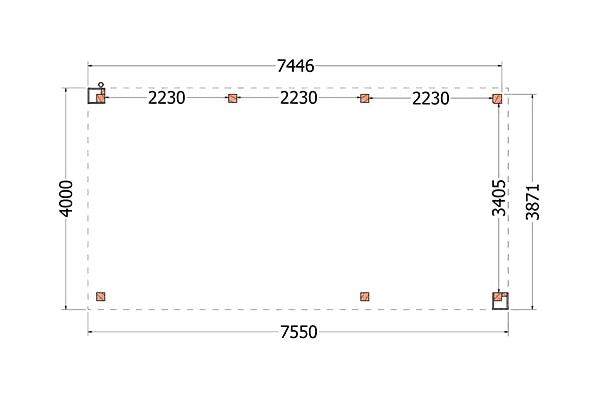 • Buitenverblijf Verona model rechts 7550x4000x2500mm (bxdxh)    52.1129