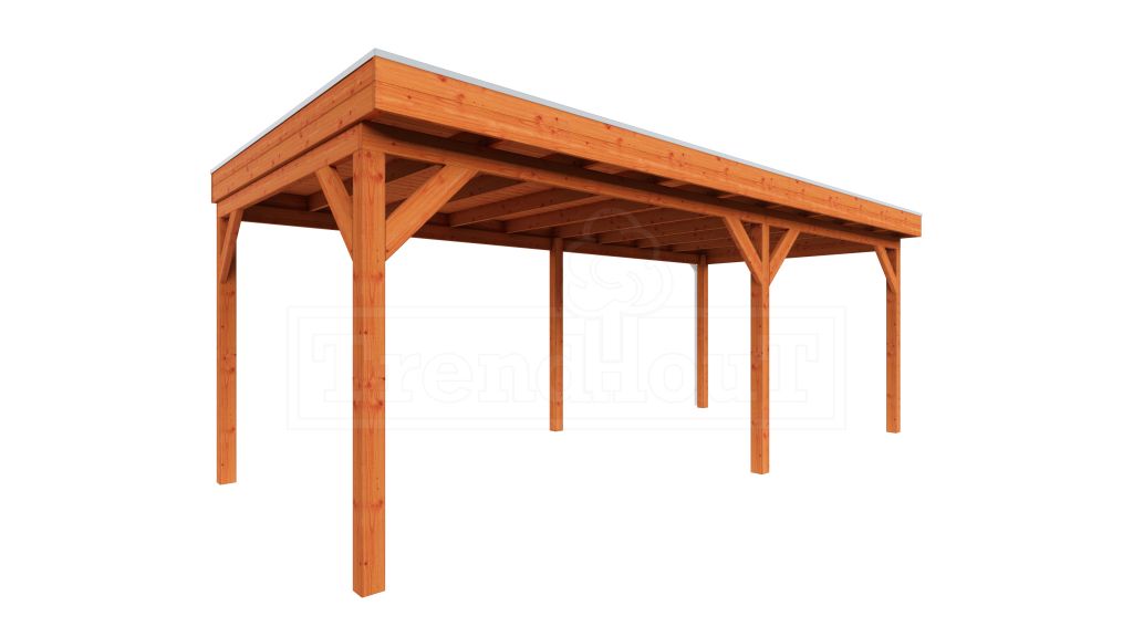 Dit buitenverblijf is als bouwpakket samengesteld en is standaard zonder wanden uitgevoerd.