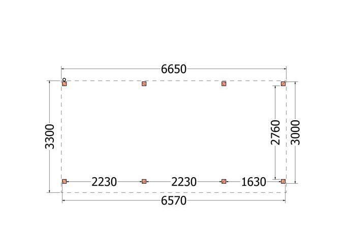 Dit buitenverblijf is als bouwpakket samengesteld en is standaard zonder wanden uitgevoerd.