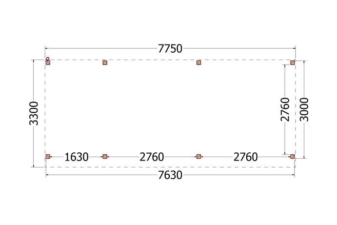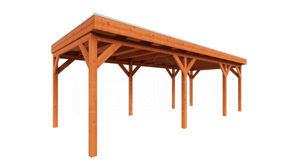 Dit buitenverblijf is als bouwpakket samengesteld en is standaard zonder wanden uitgevoerd.
