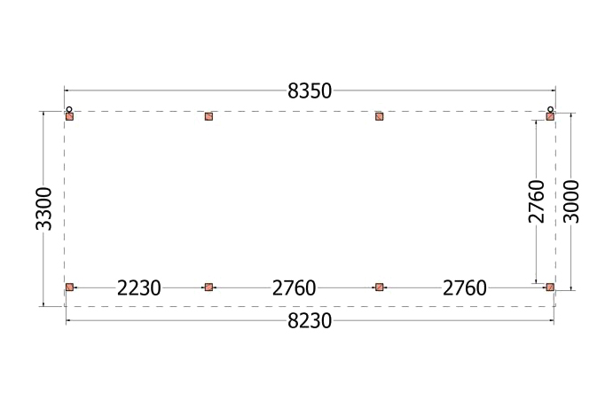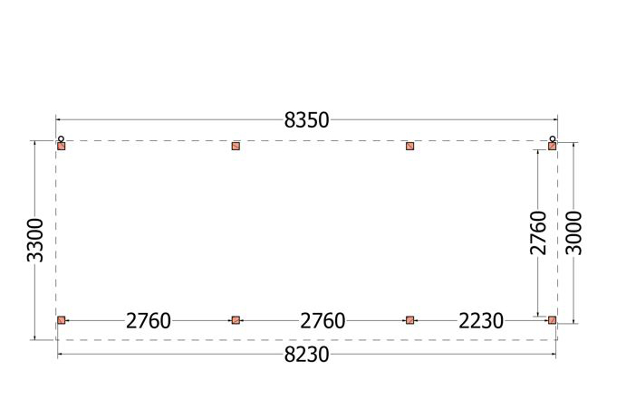 Dit buitenverblijf is als bouwpakket samengesteld en is standaard zonder wanden uitgevoerd.
