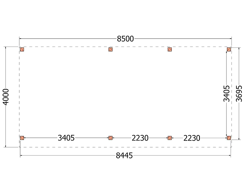 Buitenverblijf Refter is beschikbaar in 3 dieptes: 2500mm, 3000mm en 4000mm.