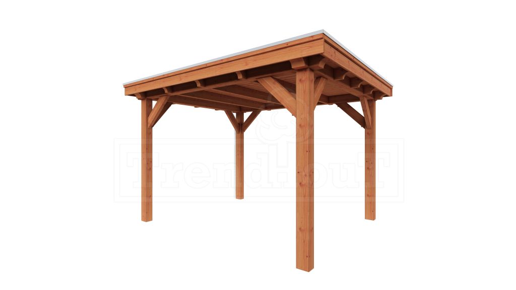 Buitenverblijf Siena is een sierlijk type buitenverblijf plat dak met rondom een overstekend dak, afgewerkt met halfronde sierklossen. Deze halfronde sierklossen zorgen voor een mooie landelijke uitstraling. De constructie is gemakkelijk en snel te monteren doordat er bijvoorbeeld zwaluwstaartverbindingen zijn toegepast.