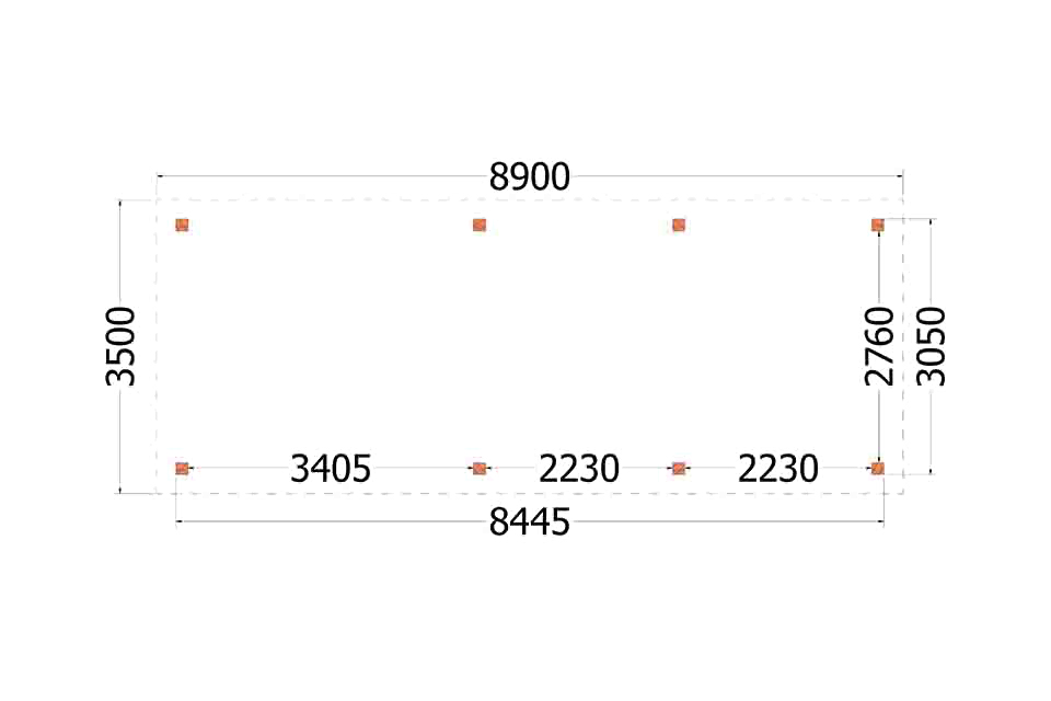 Buitenverblijf Siena is beschikbaar in drie dieptes: 2500mm, 3000mm en 4000mm.