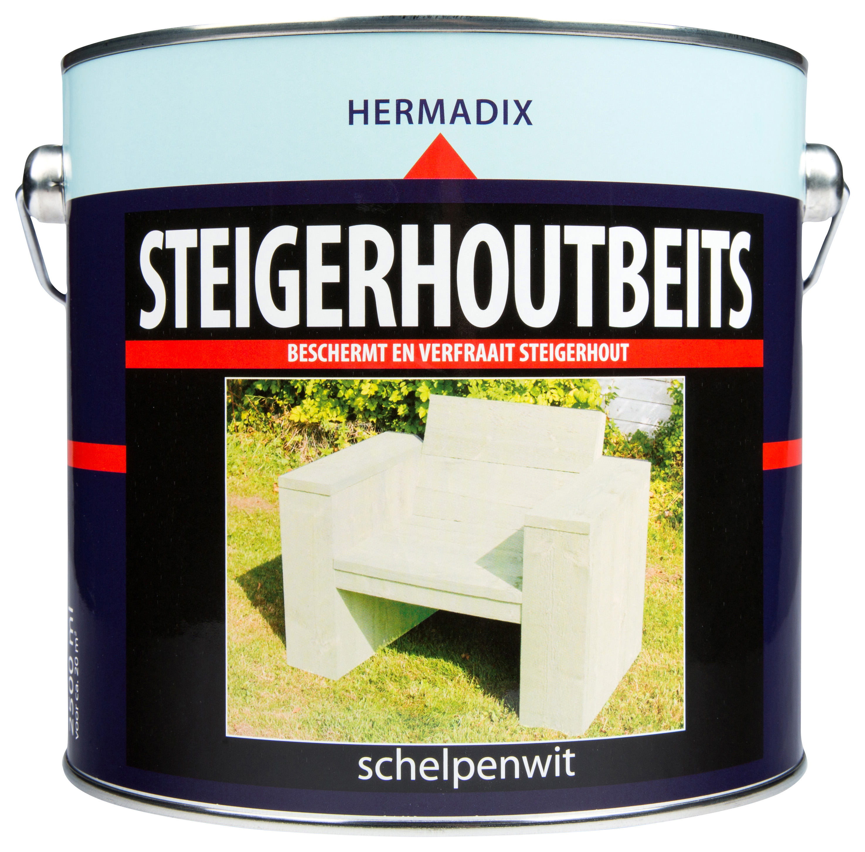 Hermadix Steigerhoutbeits schelpenwit is speciaal ontwikkeld voor nieuw en oud steigerhout. Het is een transparante beits die goed indringt in het hout.