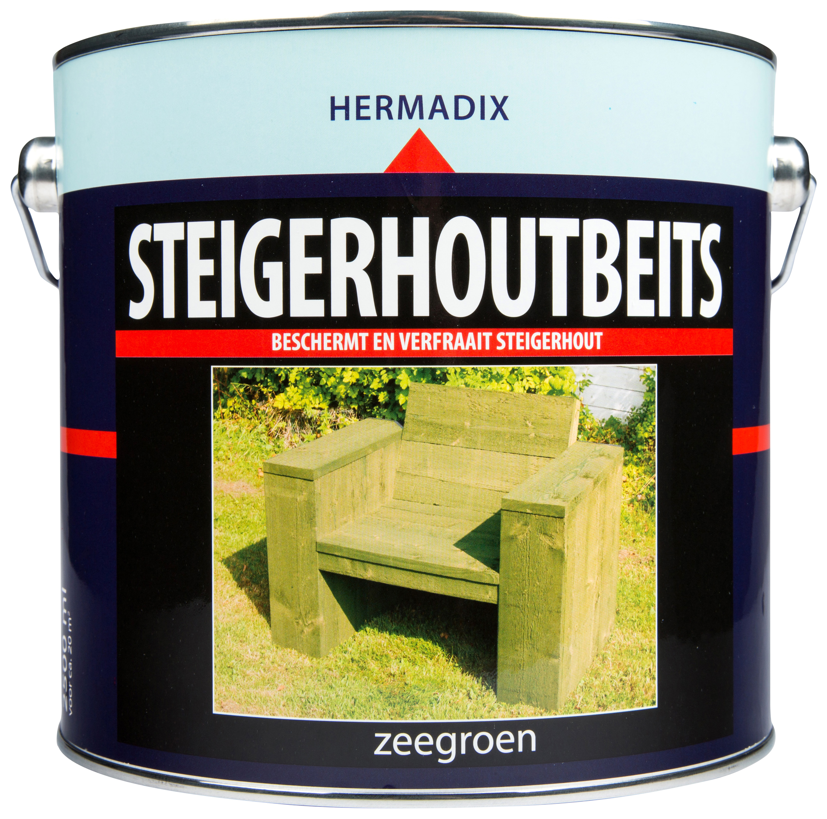 Hermadix Steigerhoutbeits zeegroen is speciaal ontwikkeld voor nieuw en oud steigerhout. Het is een transparante beits die goed indringt in het hout.