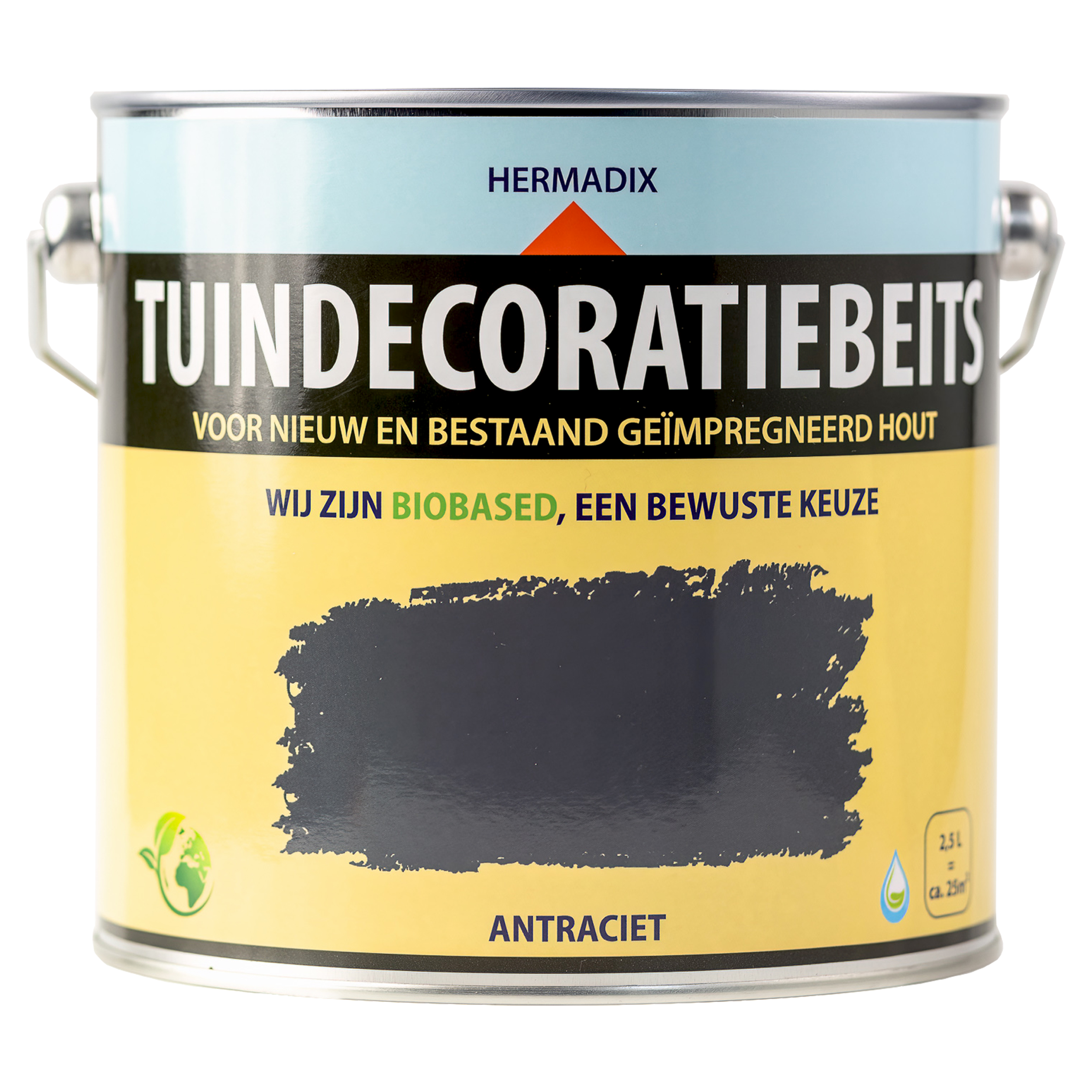 Hermadix Tuindecoratiebeits is speciaal ontwikkeld voor nieuw en oud geïmpregneerd tuinhout, zoals: schuttingen, speeltoestellen, borders, pergola en geïmpregneerde blokhutten. Nieuw geïmpregneerd tuinhout heeft een fabrieksmatige behandeling ondergaan. De speciale samenstelling van Tuindecoratiebeits is naadloos afgestemd op deze behandeling. Hierdoor kunt u uw tuinhout makkelijk en snel beitsen. Bij onderhoudslagen hoeft niet geschuurd te worden. Antraciet is een matglanzende dekkende kleur en geeft een jarenlange bescherming en sfeervolle uitstraling. Tuindecoratiebeits is makkelijk te verwerken en sneldrogend.